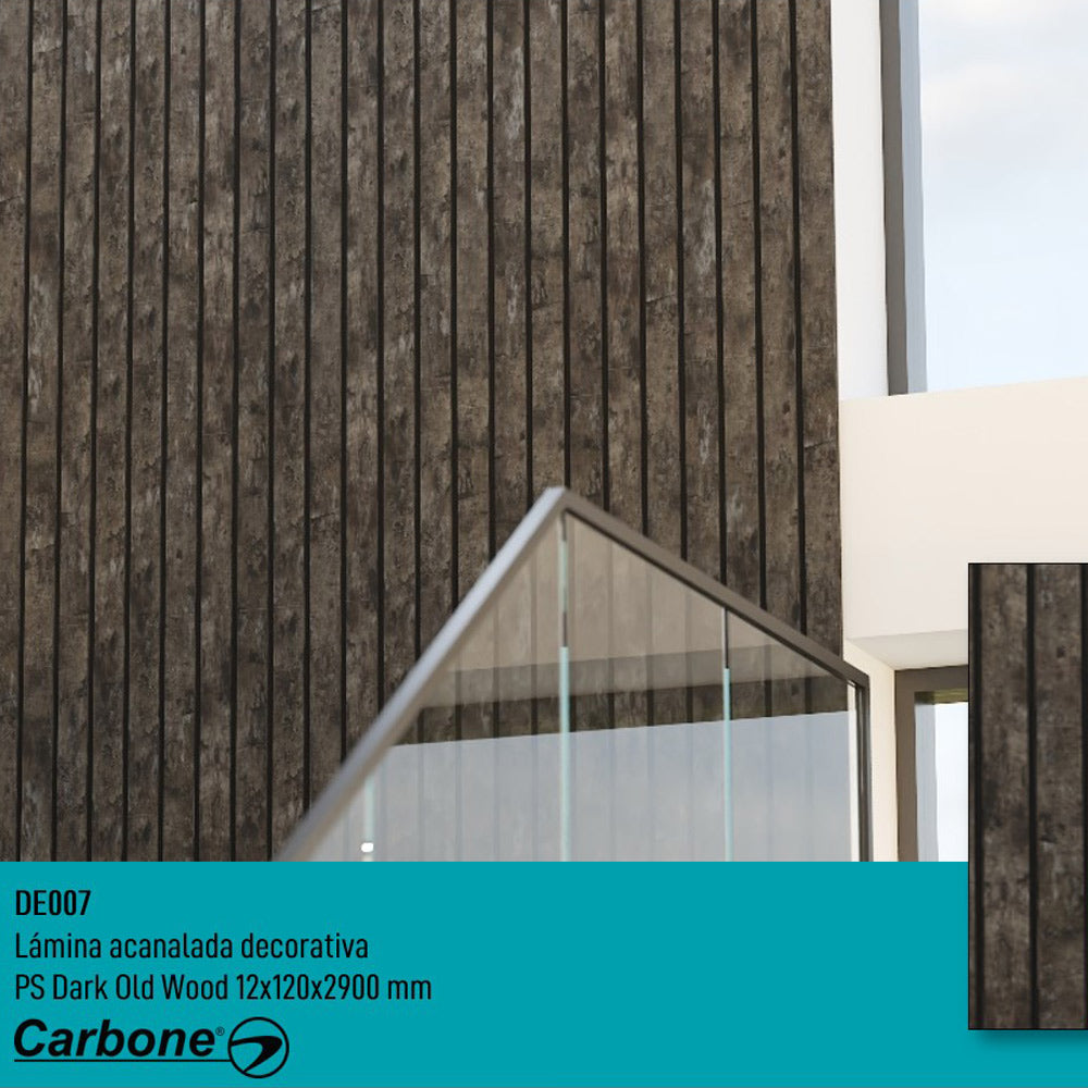 Lámina acanalada decorativa PS Dark old wood 12x120x2900 mm - Liviano, resistente a la humedad y arañazos.