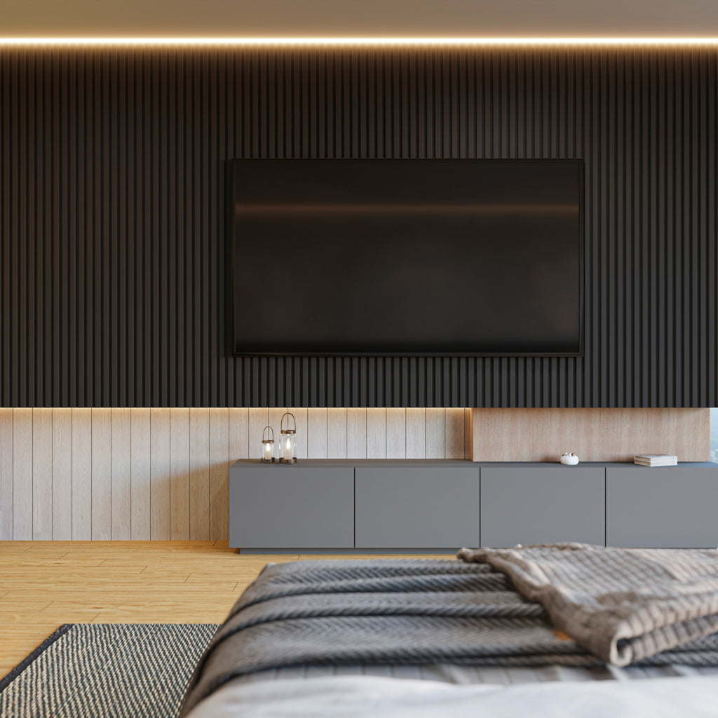 Lámina acanalada decorativa PS Matt Black 12x120x2900 mm - Liviano, resistente a la humedad y arañazos.