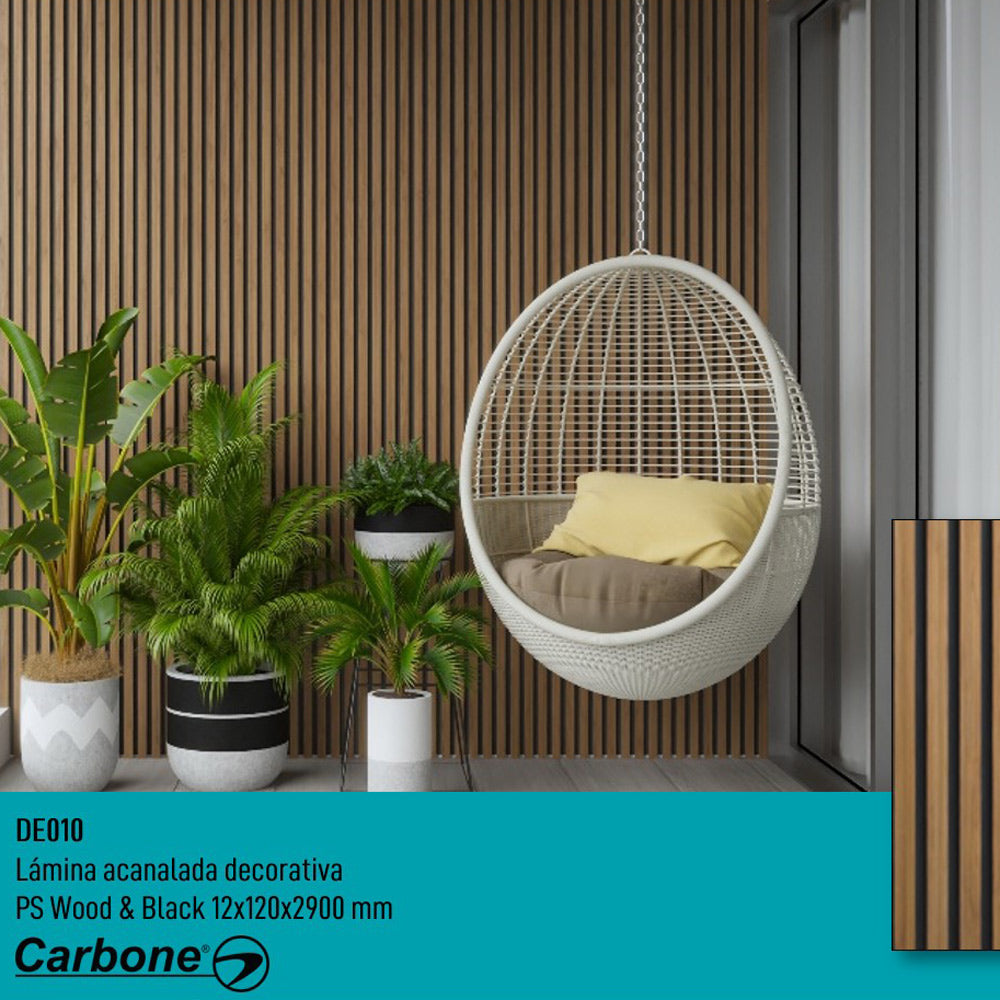 Lámina acanalada decorativa PS Wood and black 12x120x2900 mm - Liviano, resistente a la humedad y arañazos.