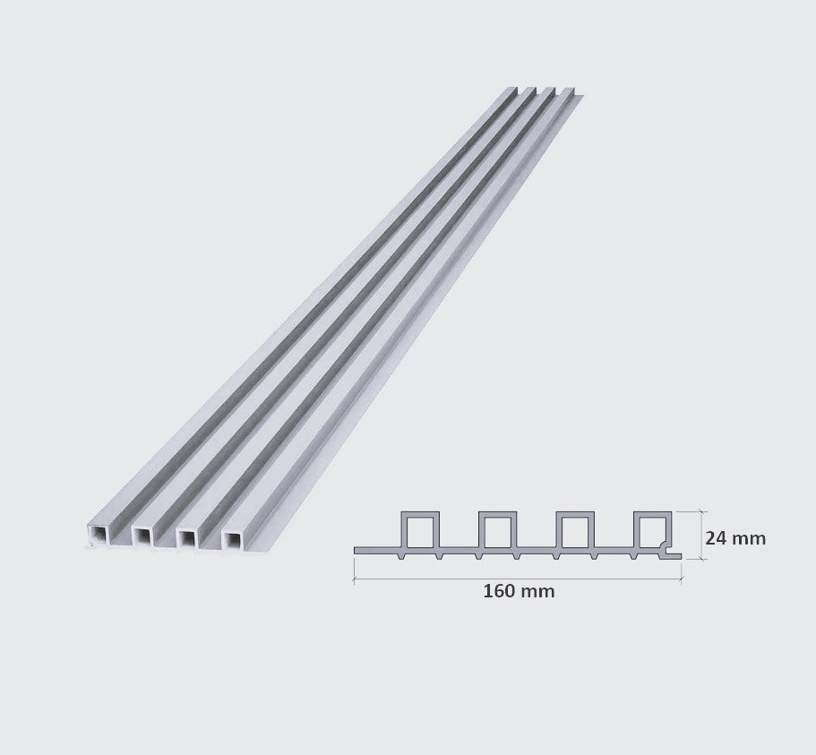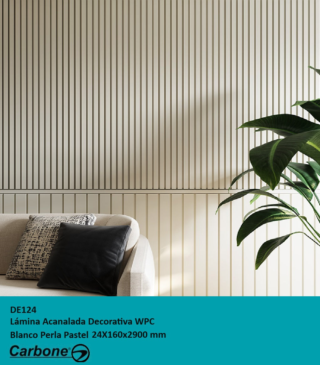Lámina acanalada decorativa WPC Blanco Perla Pastel 24x160x2900 mm - Compuesta por madera y PVC resistente al calor, humedad, y arañazos.