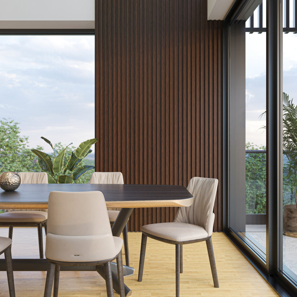 Lámina acanalada decorativa WPC Dark wood 24x160x2900 mm -Compuesta por madera y PVC resistente al calor, humedad, y arañazos.