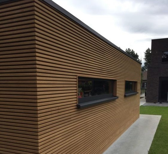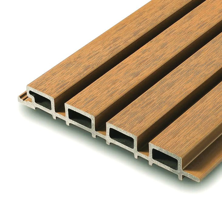 Lámina acanalada decorativa WPC Exteriores Abedul 26x219x2900 mm - Compuesta por madera y PVC resistente al calor, Apto para temperaturas desde -40 A 60 grados centígrados, hidrófugo.