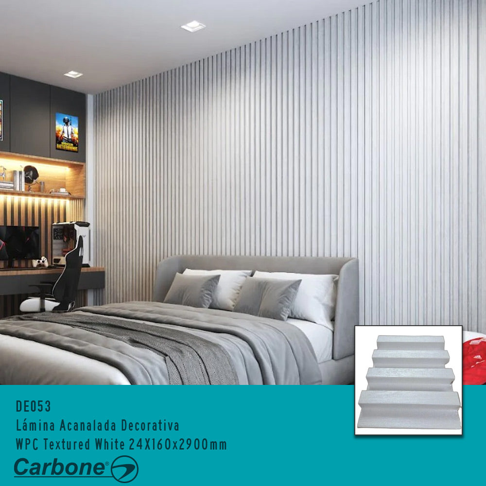 Lámina acanalada decorativa WPC Textured White 24X160x2900 mm - Liviano, resistente a la humedad y arañazos.