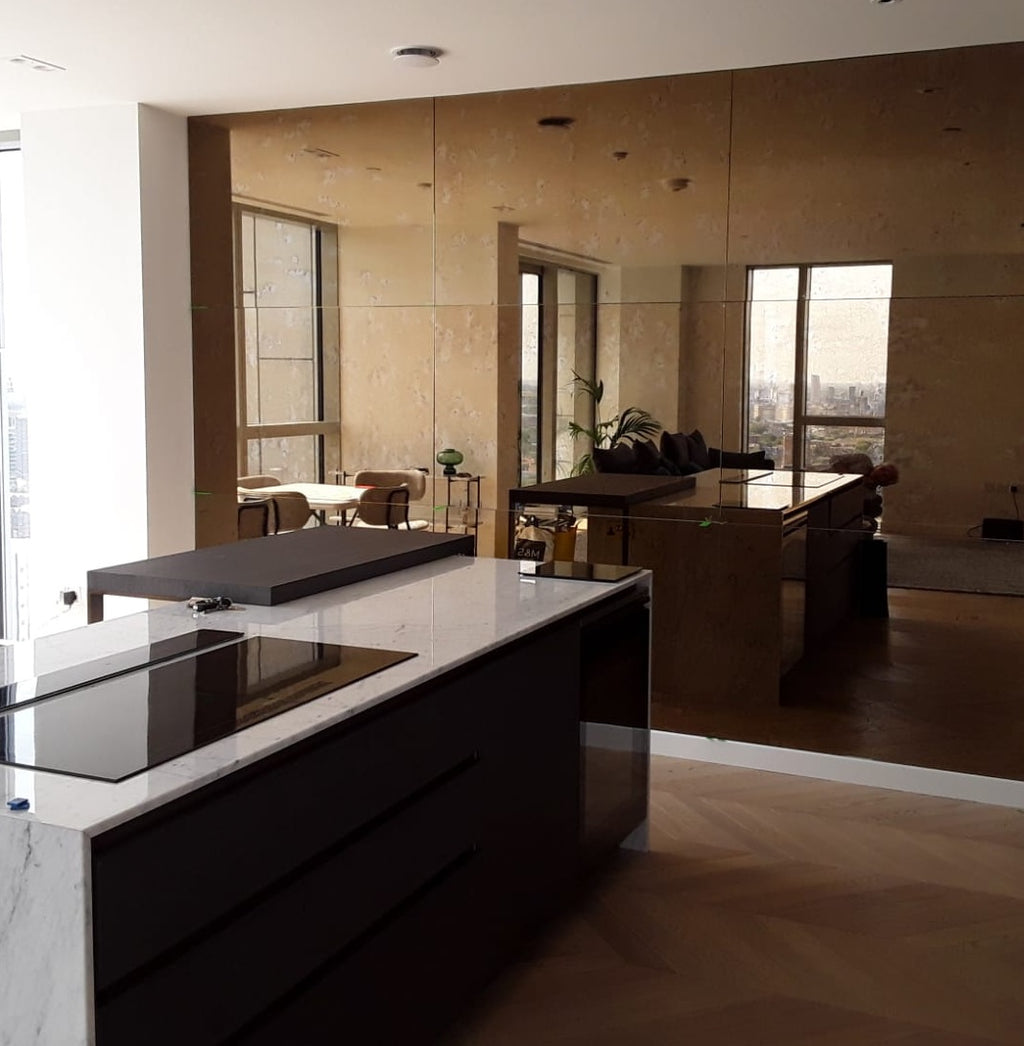 Lámina de Espejo Bronce Decorativo recortable 1.22m x 2.80m x 5mm (Do it yourself) - Compuesto por Fibra de madera Bamboo y Pvc, ultra Liviano