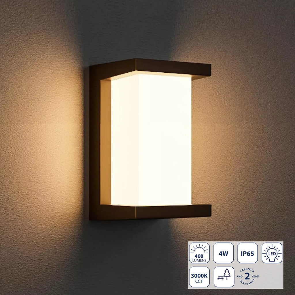 | *Nombre | Lámpara de Pared Exterior Negra LED 4W 3000K 400lm. Iluminación Potente y Cálida. Luminaria |