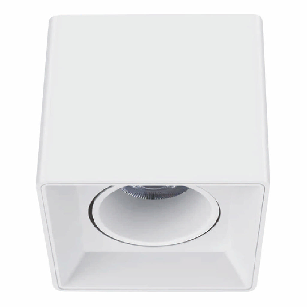 LAMPARA DE TECHO BLANCA PC 1XGU10 de superficie con un diseño simple y cuadrado con instalación sencilla, dirigible y con un voltage de 110-240V 50-60Hz, Tono de Color Blanco con un cuerpo de policarbonato que disipa altas temperaturas. Medidas de 96*96*100 Milimetro. Base GU10s