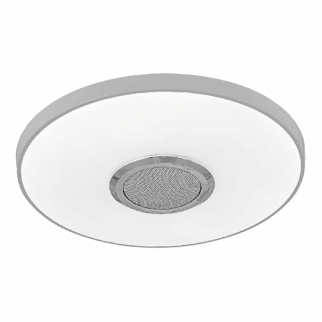 Lámpara de techo LED tipo plafón de 36Watts, 3600 lumens con función RGB y CCT (temperatura de color cálida, neutra y fría), sería una elección versátil y emocionante para iluminar tu espacio. Con la capacidad de emitir luz en una variedad de colores y tonos mediante la función RGB (rojo, verde, azul), esta lámpara te permite crear ambientes personalizados y dinámicos según tus preferencias y el estado de ánimo que desees crear.Material de hierro y acrílico de alta calidad con una dimension de 270x60mm, voltaje de 110-240v 50-60Hz con parlante y control remoto, con luz ajustable y función bluetooth.