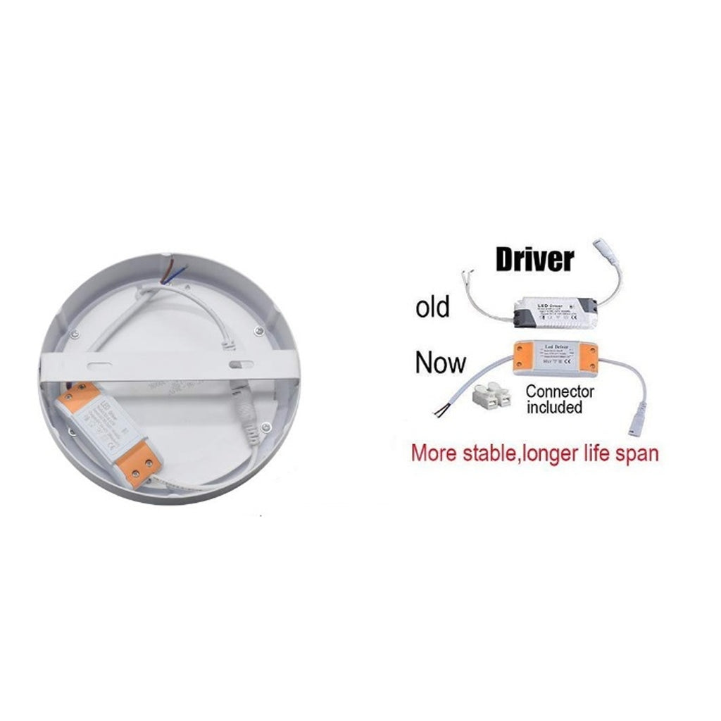 Lámparas LED Sobreponer Redondas. 120Volt. 60Hz. Certificado CE. Color Blanco. Material Aluminio - plástico Incluye Transformador LED y Grapas de instalación. Caja Color. Código Barra.