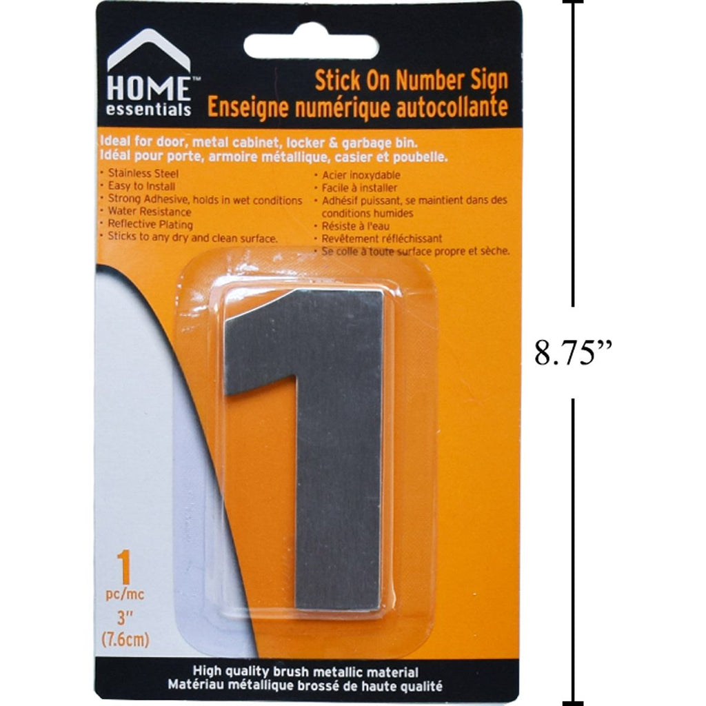 Letrero Señal Numérica Adhesiva De 3" # 1 Acero Inoxidable