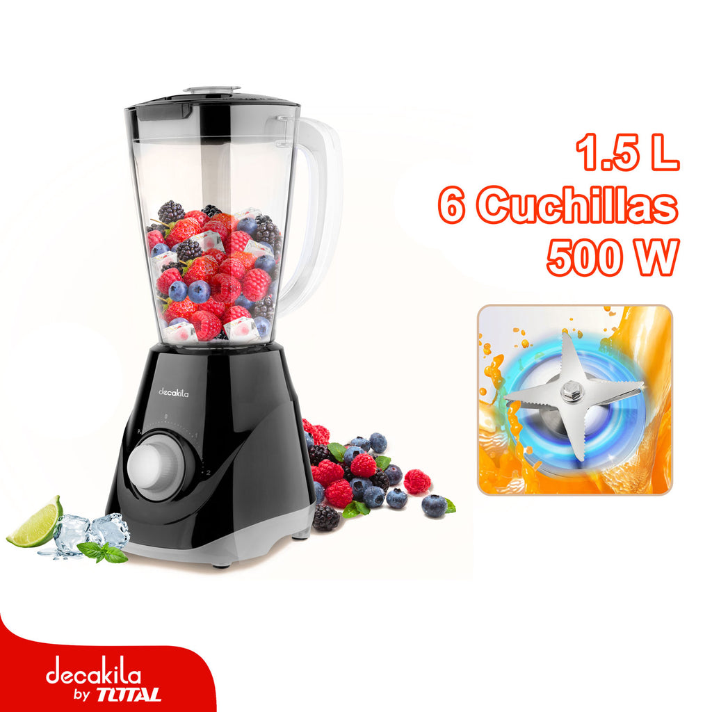Licuadora 500W 1.5L 120V 50/60Hz 2 Velocidades. 6 Cuchillas. Jarra De Plástico.