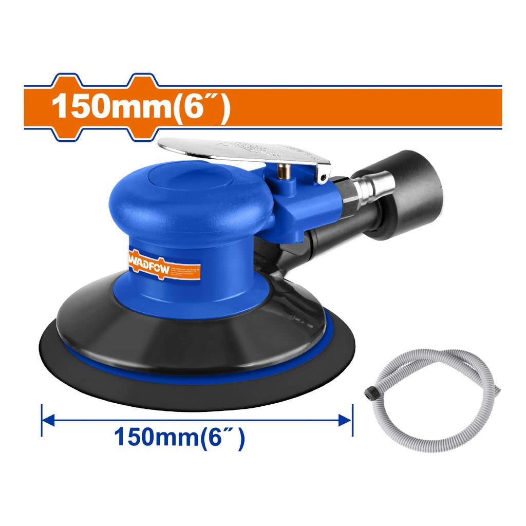| Características | Disco de lijado: 6" (150 mm). Entrada de aire (PT): 1/4". Velocidad sin carga: 10500 rpm. Manguera de aire (ID): 3/8". Consumo de aire: 3 cfm (84 l/min). Presión de aire: 90 psi, 6.3 bar. |