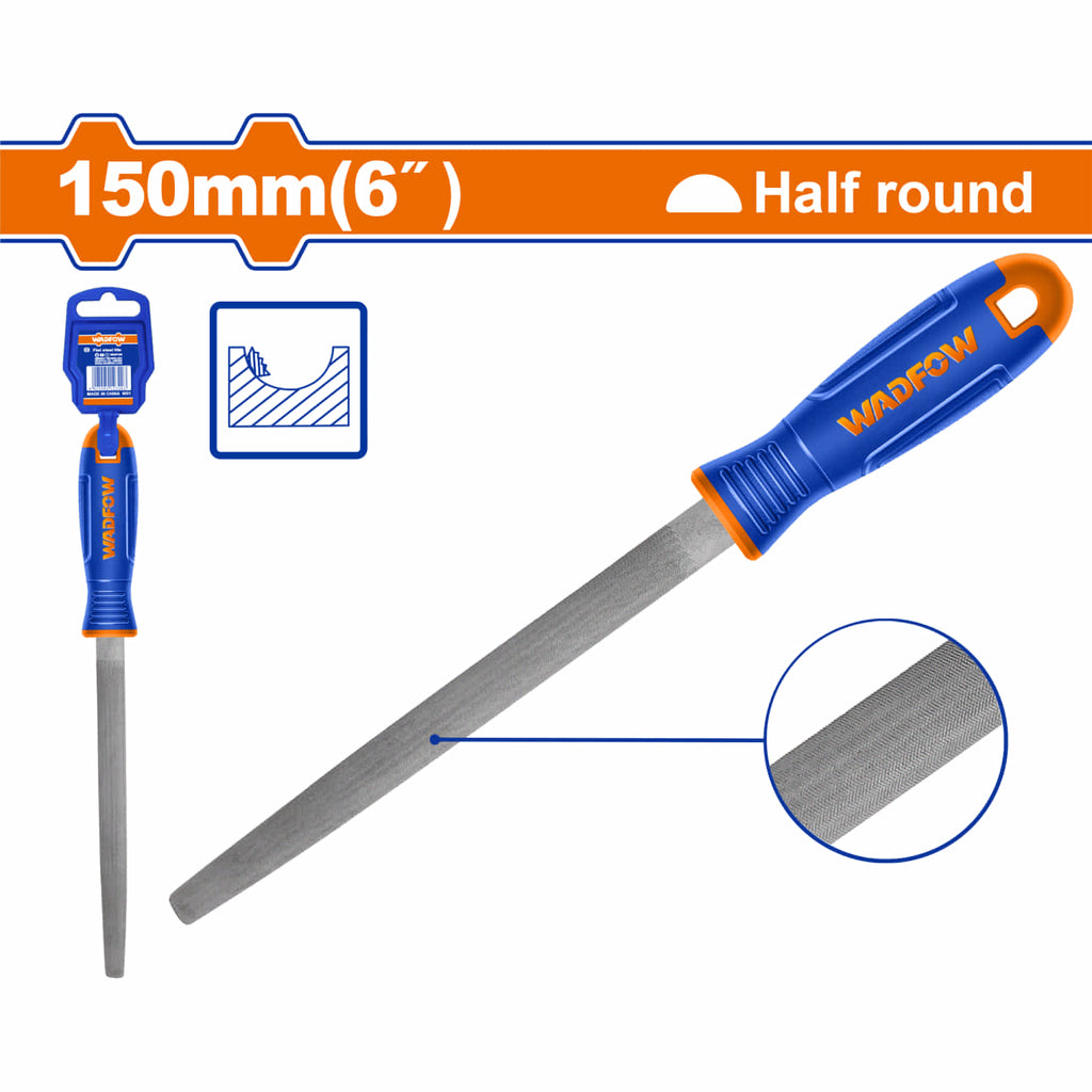 | Características | Lima Media Caña Para Acero. Largo 150 mm. Acero T12. Mango de diseño único. |