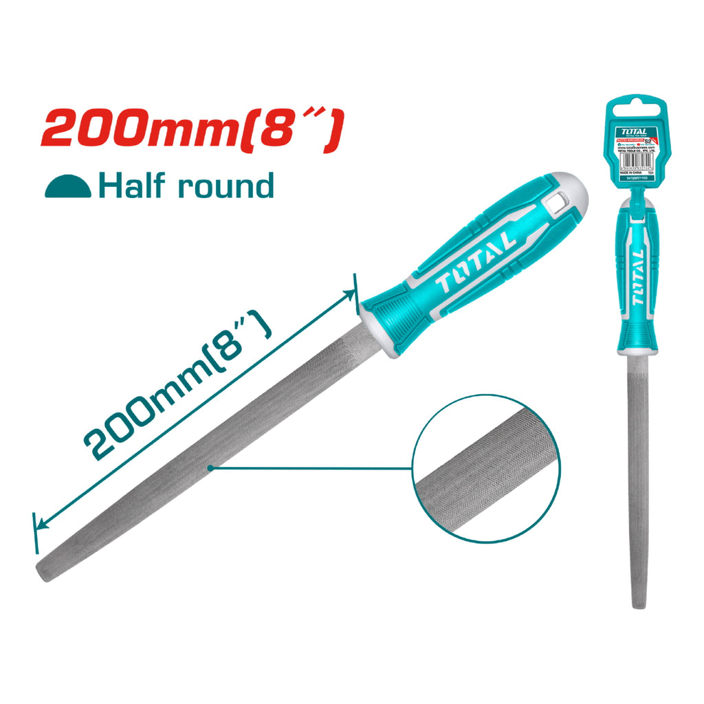 Lima media caña para acero. Largo 200mm. Acero T12. Gancho plástico.