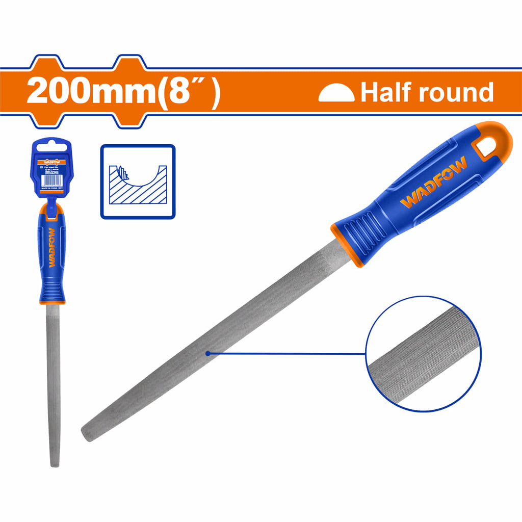 | Características | Lima Media Caña Para Acero. Largo 200 mm. Acero T12. Mango de diseño único. |