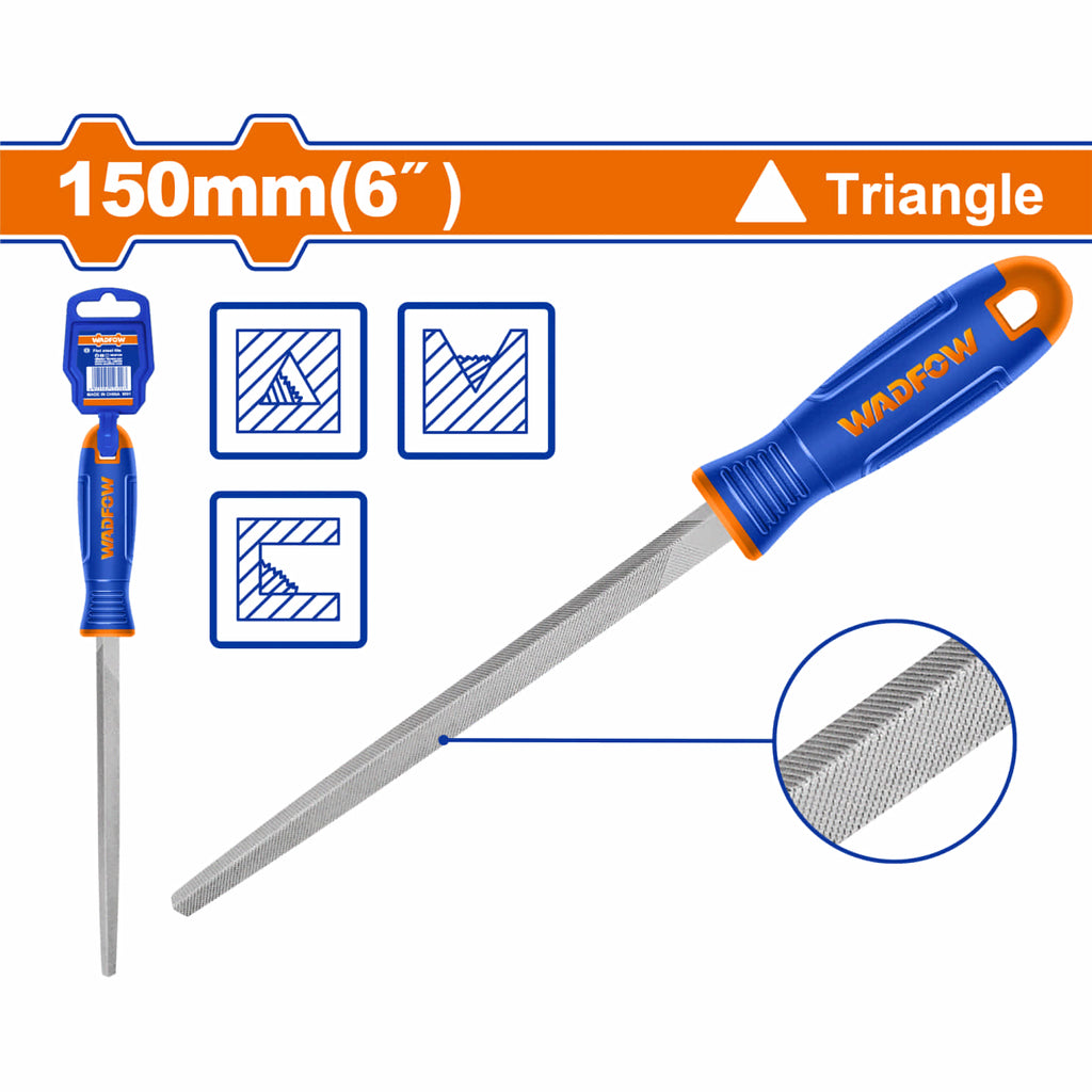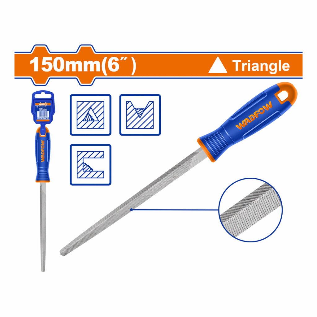 | Características | Lima Triangular Para Acero. Largo 150 mm. Acero T12. |