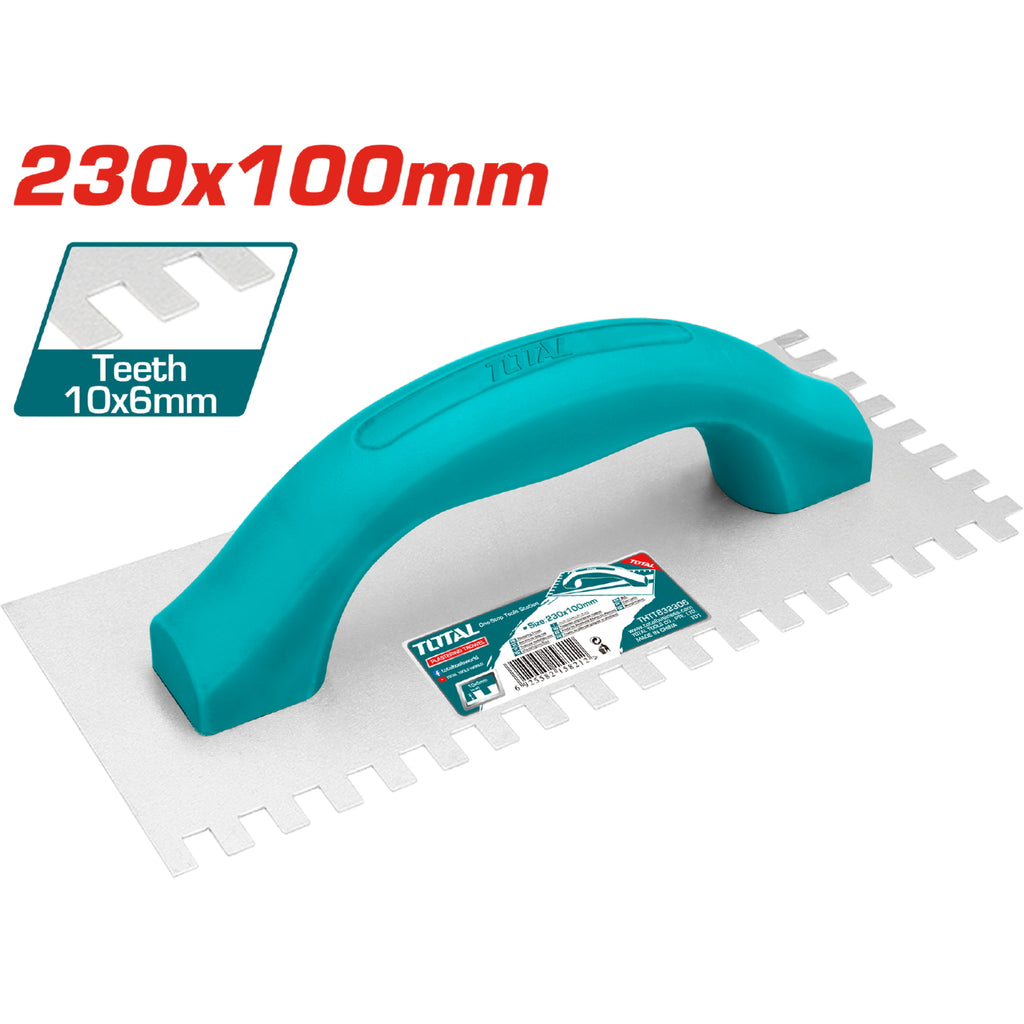 Llana de yeso dentado (mango de plástico) 230x100mm, hoja de acero al carbono. Presentación de etiqueta.