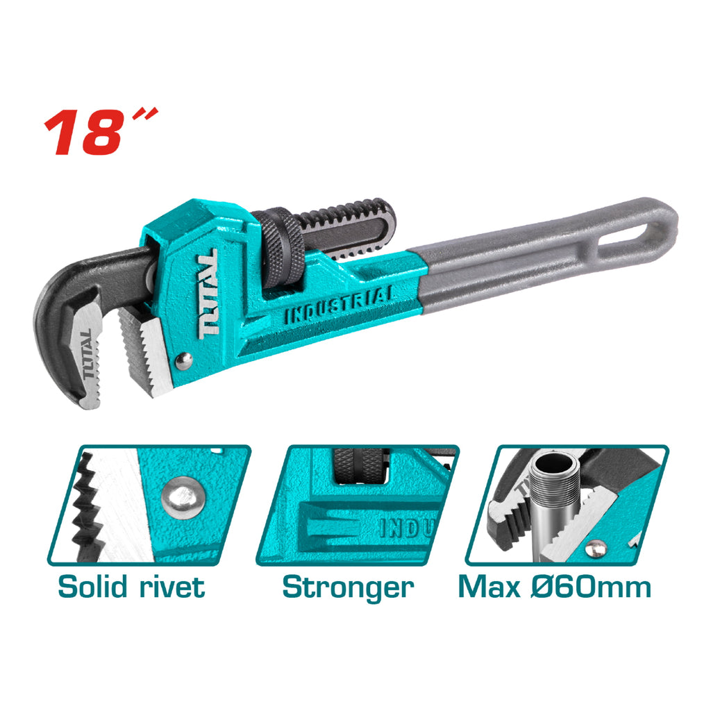 Llave de tubo forjada acero alta calidad. Remache sólidoDiámetro Max sujeción: 60mm. 18''(450mm).