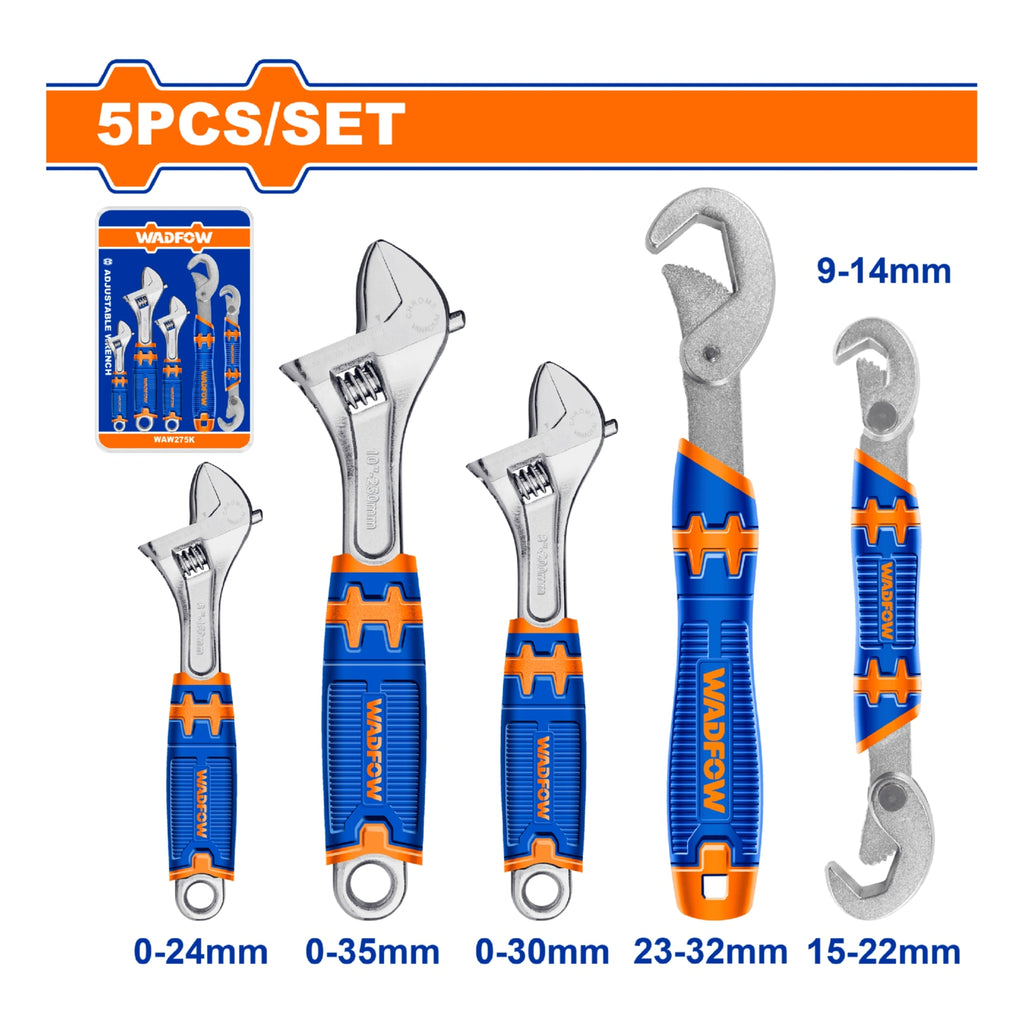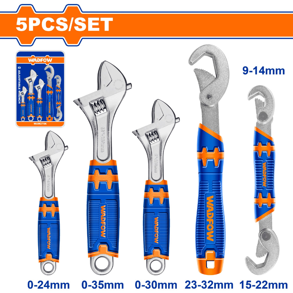 | *Nombre | Llaves Ajustables Inglesas (3)Pico de Loro (2) Set de 5 piezas. Ancho de apertura variable. |