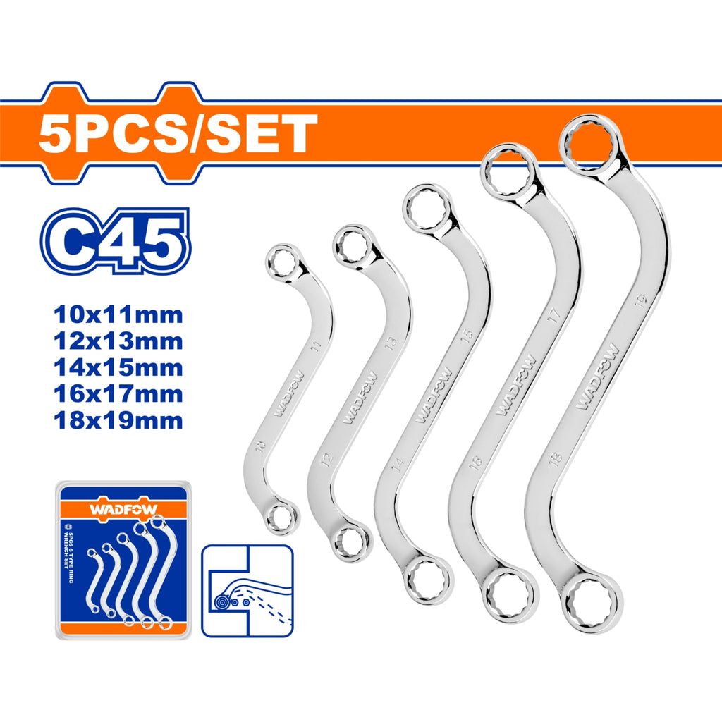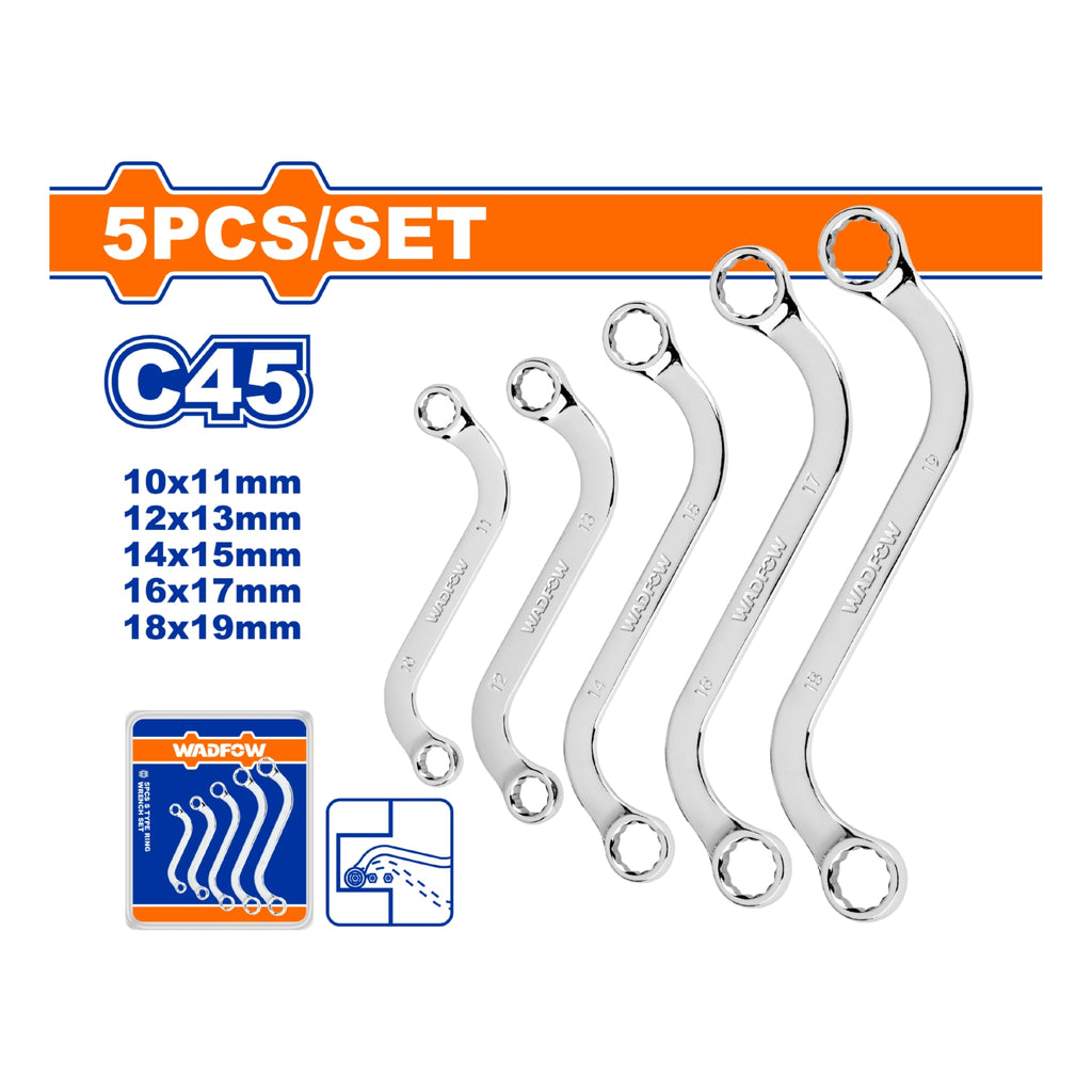 | *Nombre | Llaves Curvas Tipo S. Set de 5 pzas. Tamaños:8-22mm. Acero al carbono #45. Pulido. |