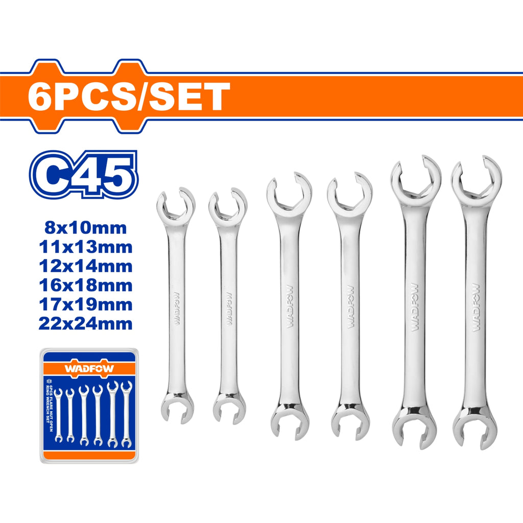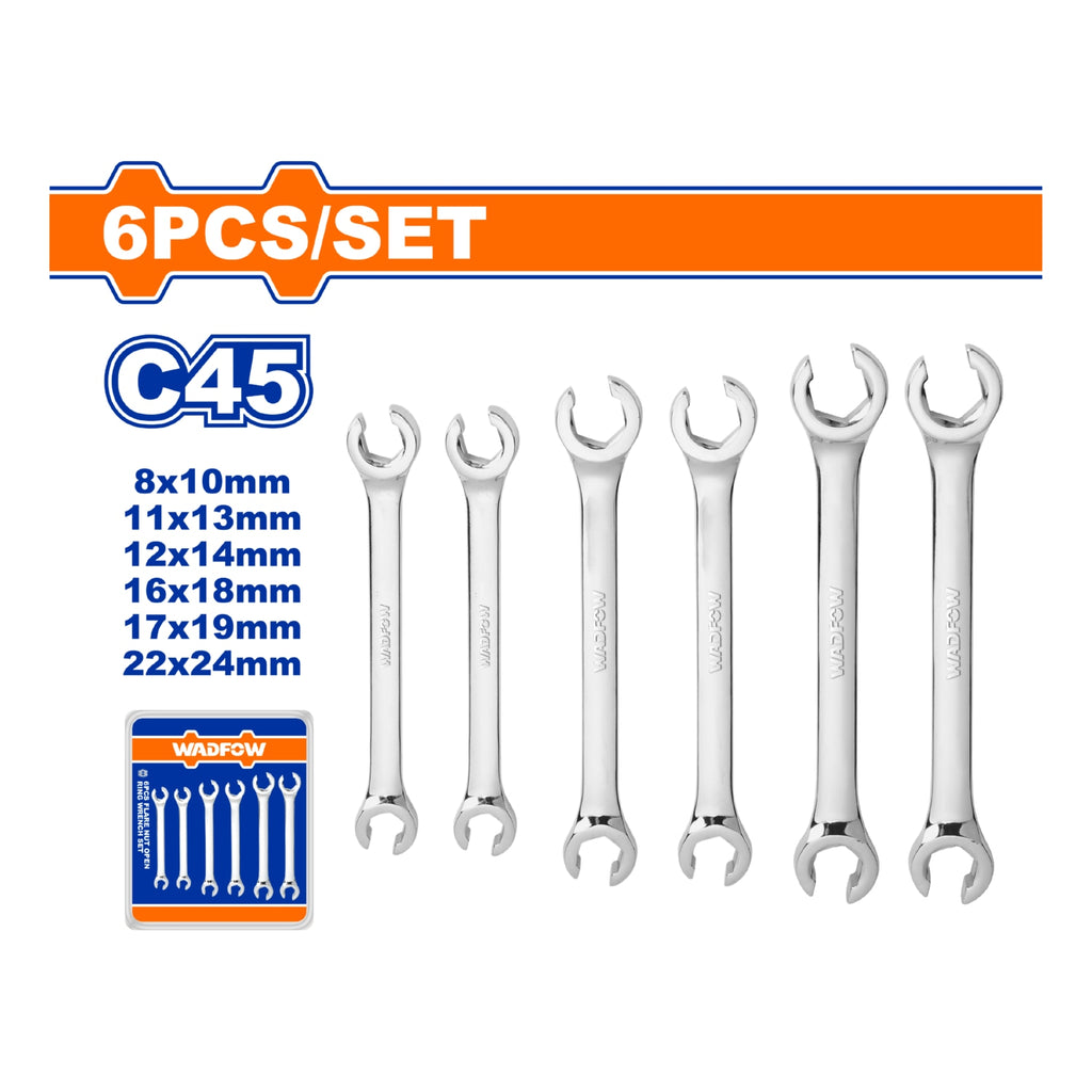 | *Nombre | Llaves Hexagonales dobles abiertas. Set de 6 pzas. Tamaños: 8-24mm. Acero al carbono #45. Pulido. |