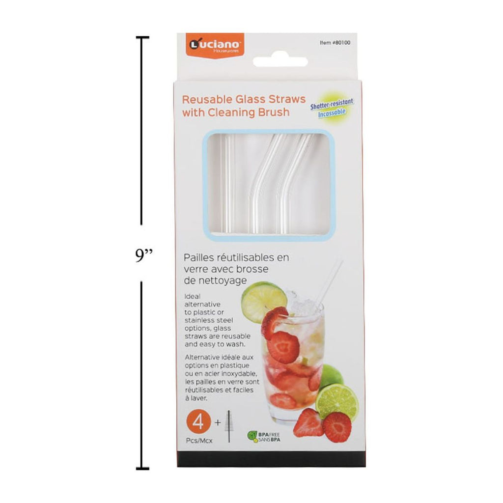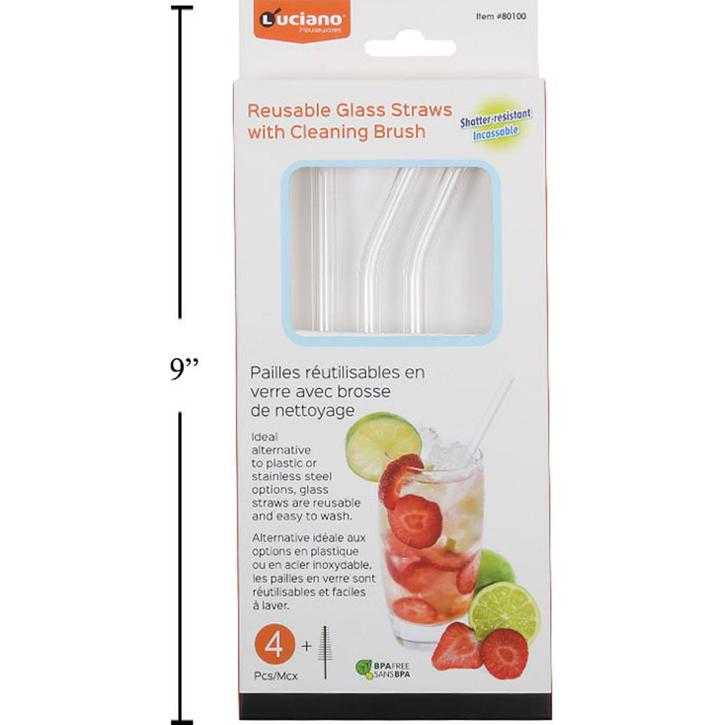 Luciano 4 Carrizos de vidrio de 20 cm L, 2 rectas + 2 curvas con cepillo, cbx