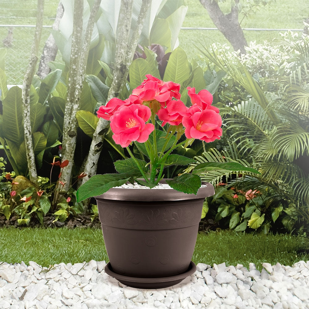 | *Nombre | Macetera redonda con plato, de 30 cm, color wengué |