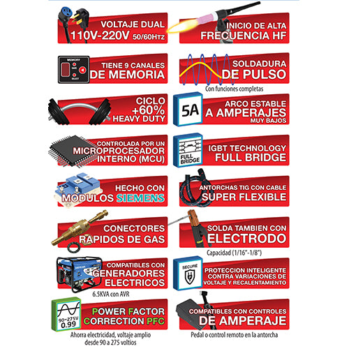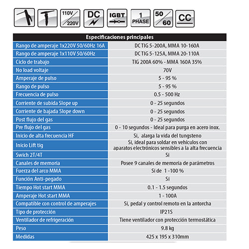 Maquina Soldar Tig DC Alta Frecuencia Y Electrodo TIG 200PD-DV 110/220V. USO INDUSTRIAL