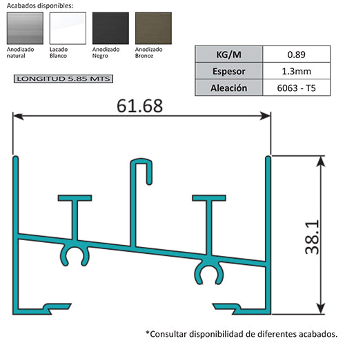 Marco Inferior Ventana VC . Espesor 1.27 Mm Largo 5.85 Mts. Acabado Anodizado Negro VC122