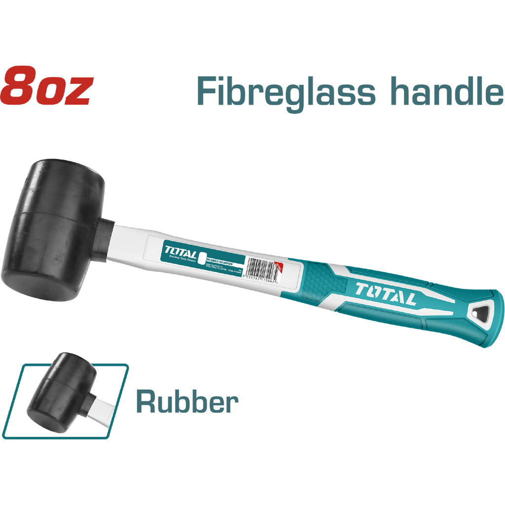 Martillo de goma 8oz/220g. Mango de fibra de vidrio.
