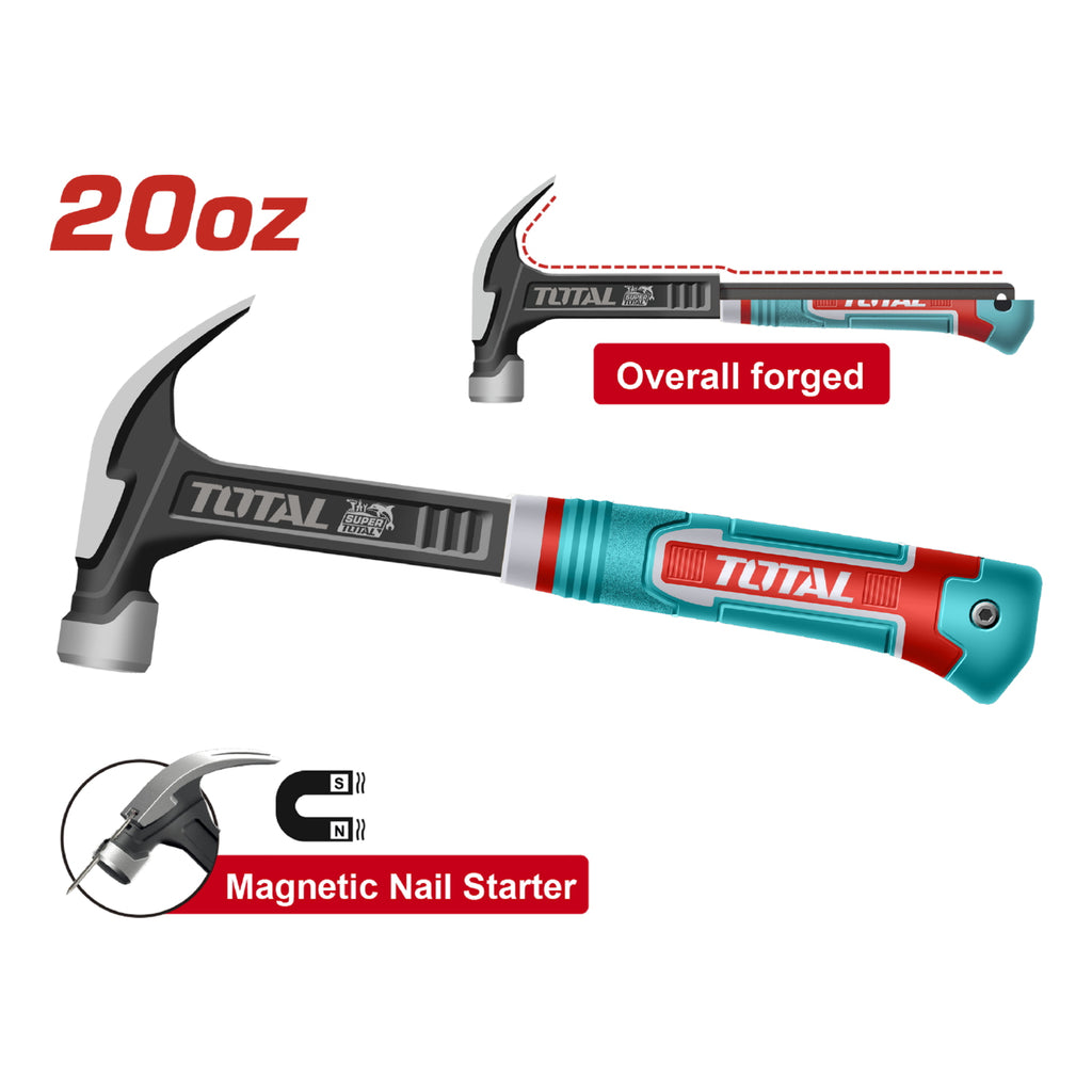 Martillo De Oreja Forjado 20Oz Magnético. Acero Al Carbono #45 Mango Fuerte.