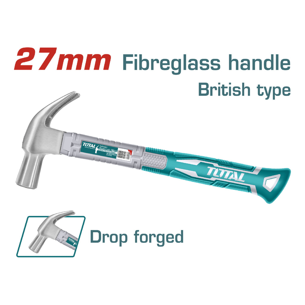 Martillo de Orejas tipo Ingles de Acero #45 Acero al Carbono de 27mm.Tratamiento térmico. Mango de fibra de vidrio.