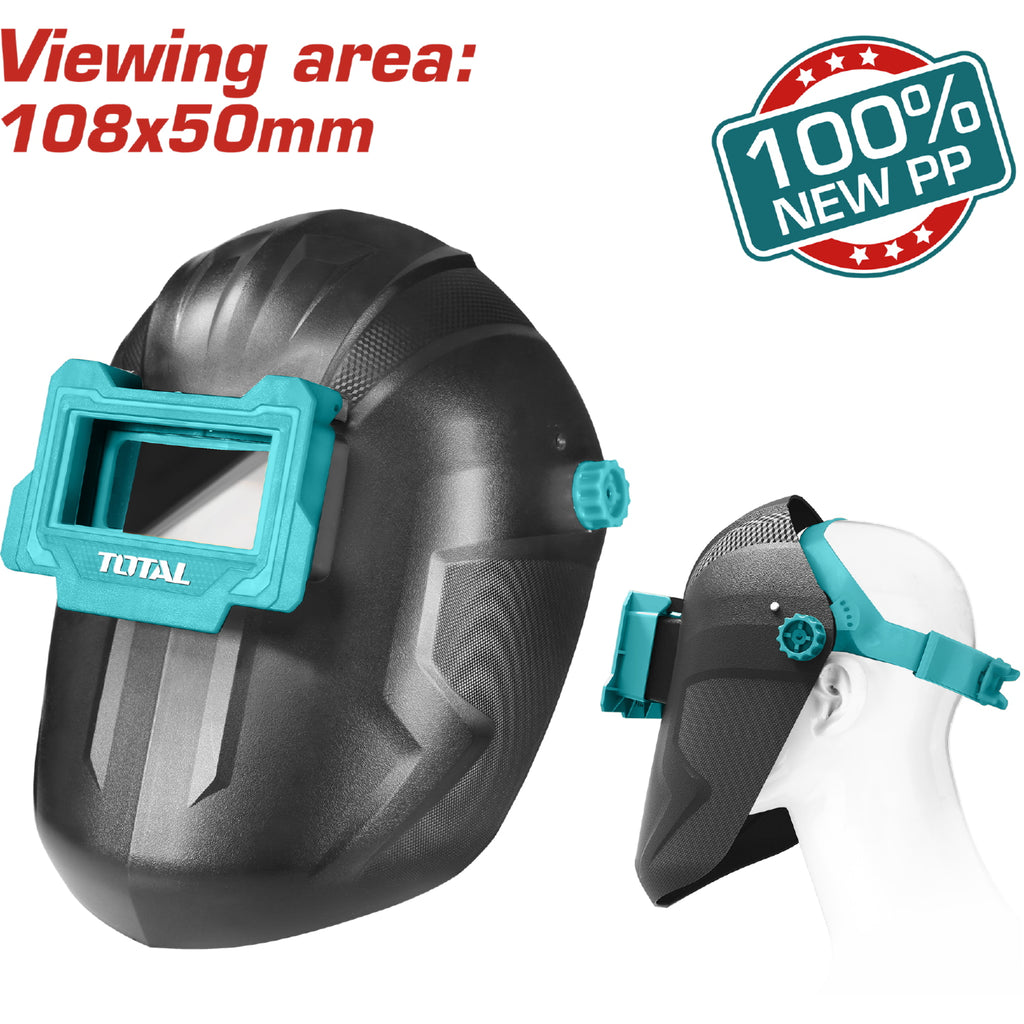 Mascara de soldador. Material 100% PP. Medida de vidrio 108x50x3 mm de ventanilla movible.