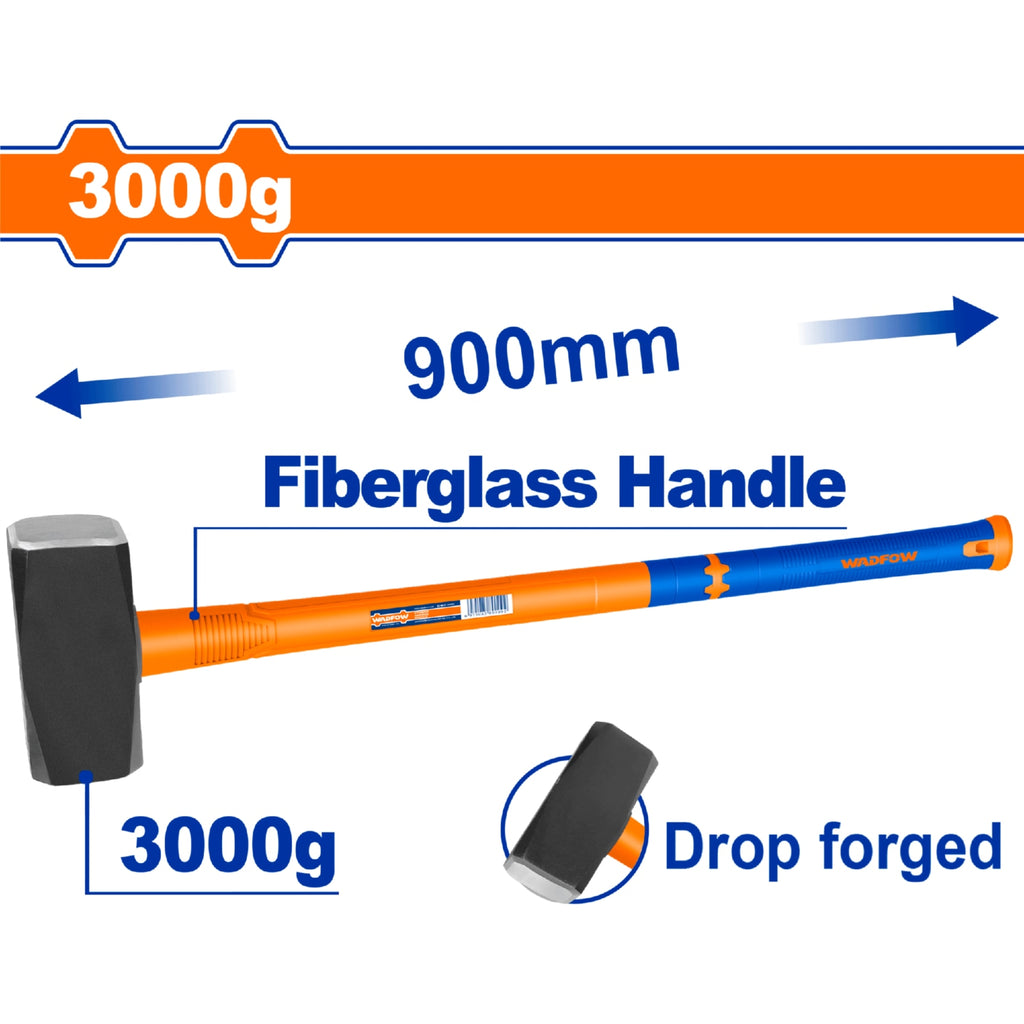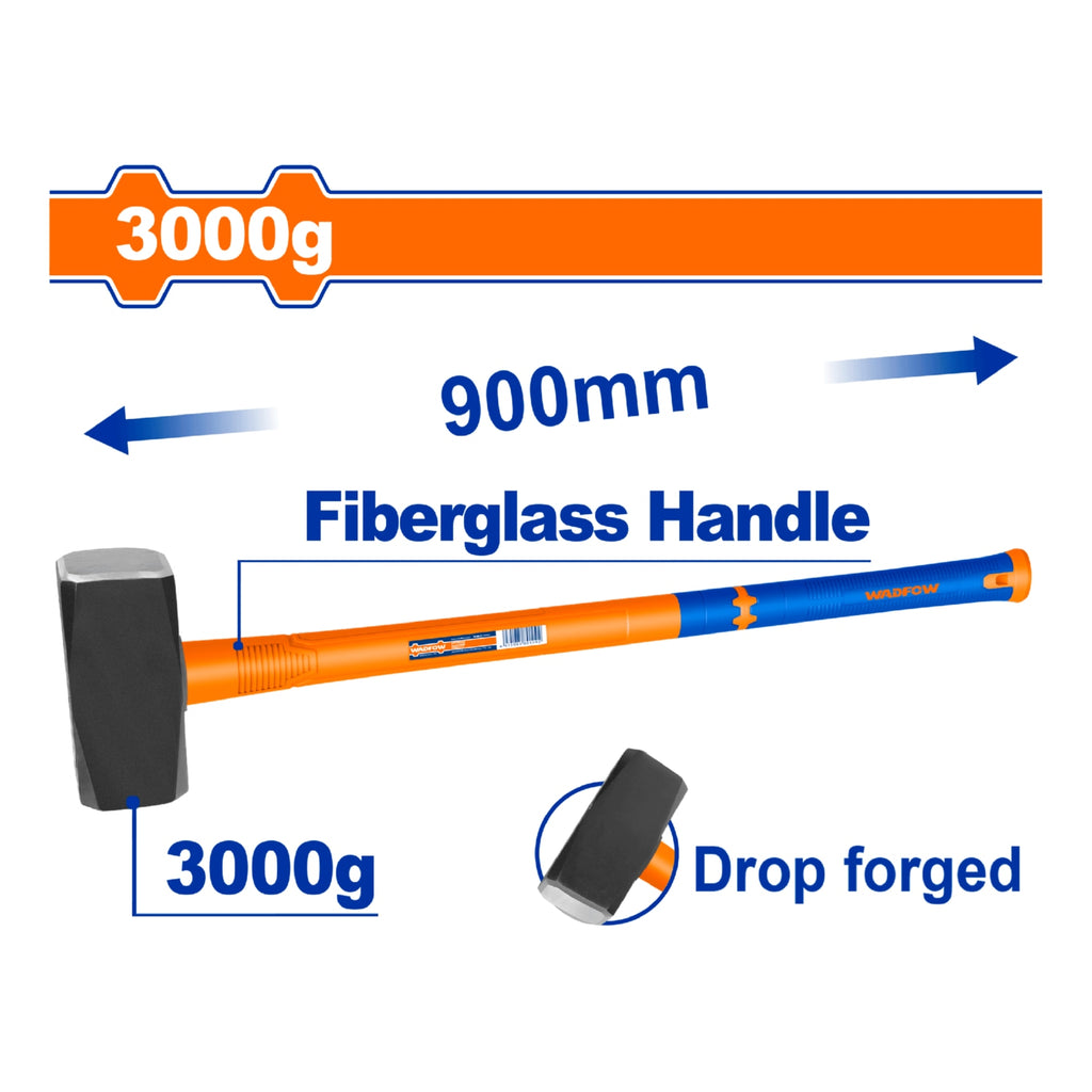 | Características | Mazo 3Kg, Tratamiento térmico, Acero #45 Mango fibra vidrio. Long: 900mm. Cabeza de martillo forjada a presión. |