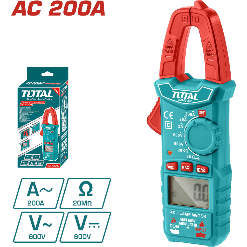 Medidor De Abrazadera Pinza Amperimétrica 2000 Counts. Con Retención De Datos.