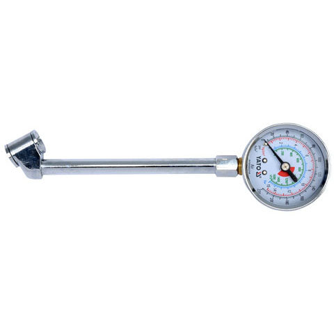 Yato Medidor De Presion De Llantas De 15 Bar, Material: Cuerpo De Metal, Cristal De Acrilico, Rango De La Escala: 0-220 Psi, Tamaño: 19.5 X 5.0 Cm. Indicador De Presion De Llantas, Medidor De Presion De Neumaticos, Medidor Para Llantas