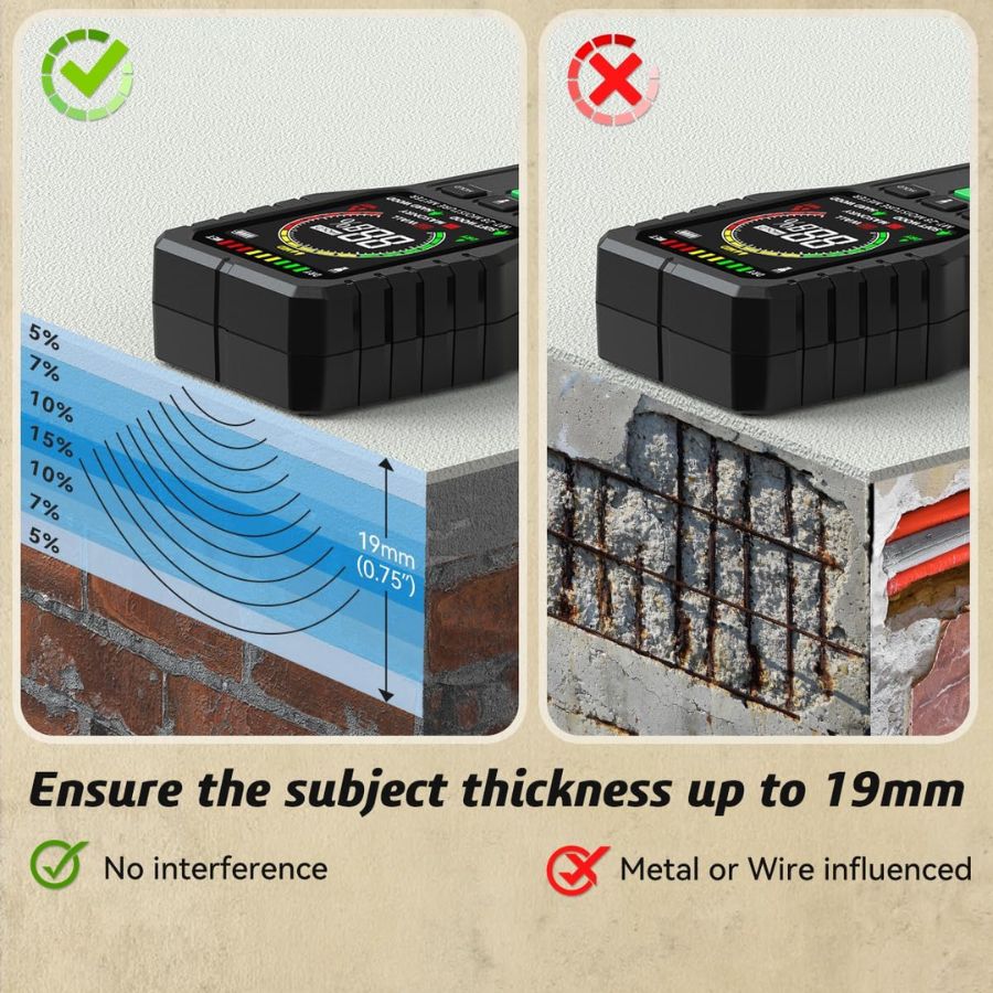 Este medidor de humedad es una herramienta indispensable para asegurar la calidad y seguridad del hogar, garantizando mediciones precisas y confiables.