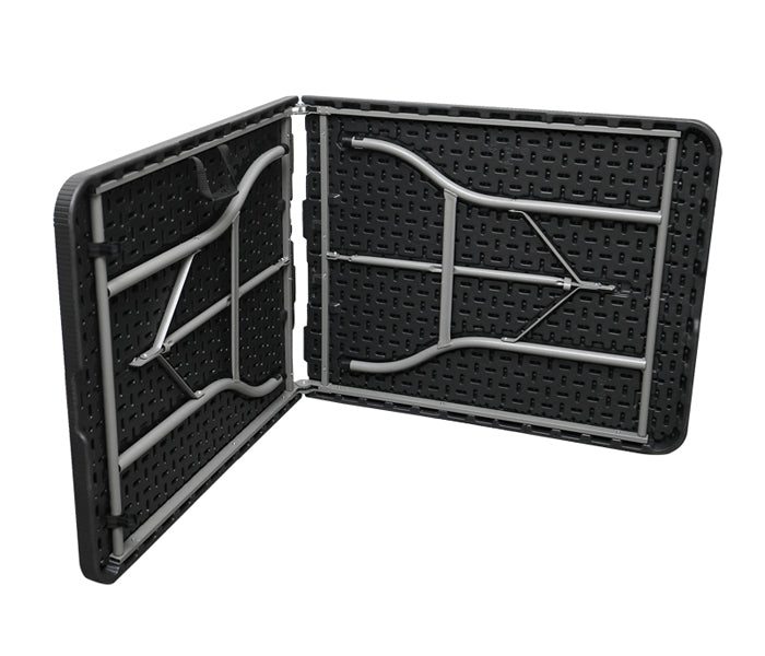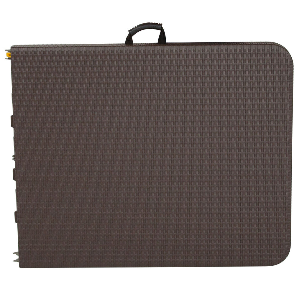 Mesa Plástica Plegable Estilo Rattan De 6 Pies X 2.5 Pies Con Marco De Acero Revestido.