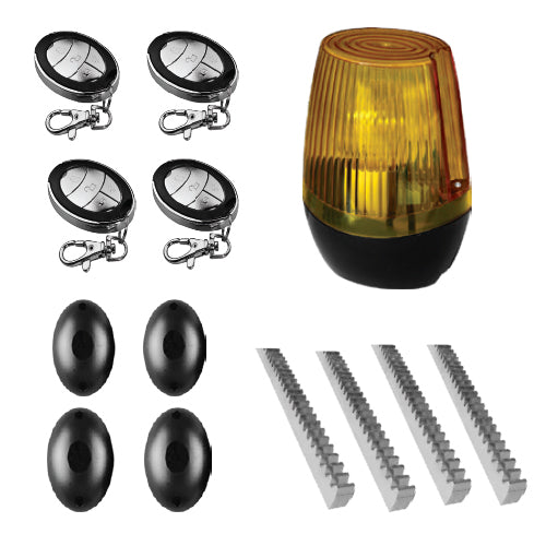 Motor corredizo Rhyno 800Kg.110V/60htz.4 controles, 4 mts cremallera, 2 pares fotocelda, 1 lampara con extension de señal. Rolling code (2años)
