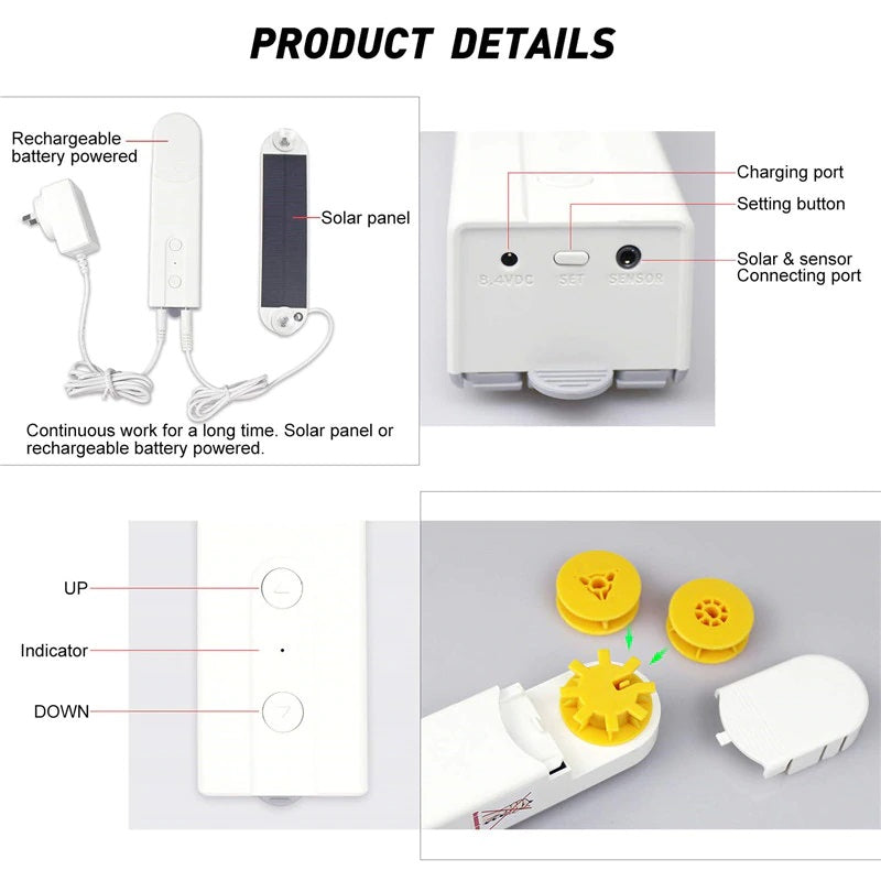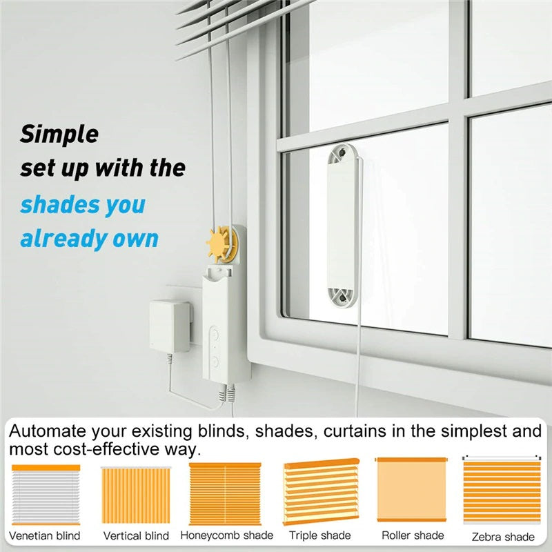 •Instala y configura fácilmente el Motor de la Unidad de persianas en minutos. Funciona con cualquier cortina o persiana de cordón o cadena de plástico o metal.