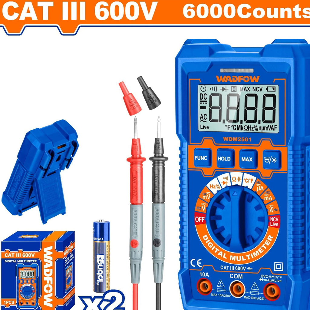 Multímetro Digital 6000 Dígitos. CATIII 600V. Medición De Temperatura. Rango Automático.
