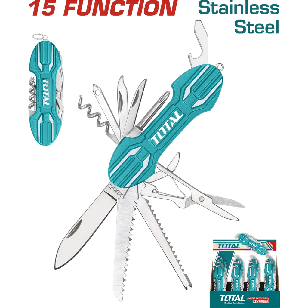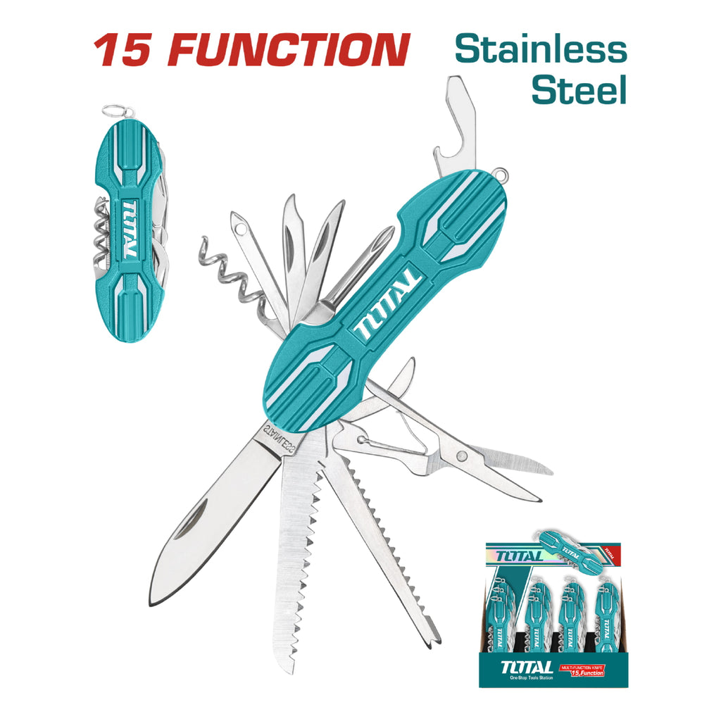 Navaja Multifuncional De 15 Operaciones Tijeras, Serrucho, Destornillador Y Mas, Mango De Aluminio