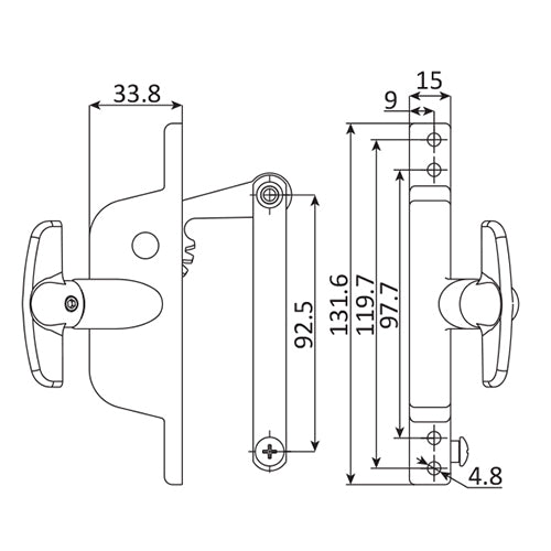Operador de Ventana de Celosia. Incluye barra operadora de 92.50 mm. Extremo con tornillo. Acabado Silver.