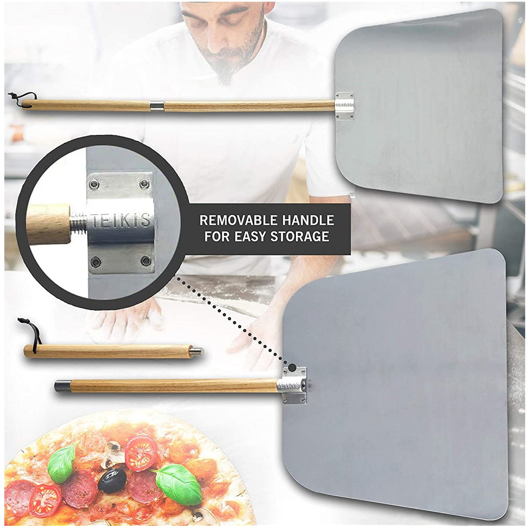 Fabricado para hornear de forma segura y fácil. Logra hornear a nivel profesional con esta herramienta culinaria, nuestra pala de pizza premium cuenta con una delgada hoja de aluminio de 14 x 16 pulgadas con un mango de madera duradero que le permite superar a todos los demás en eficiencia. ¿Por qué? La fina hoja te permite deslizar fácilmente tu pizza, pan y pasteles sin problemas dentro y fuera del horno y el mango de madera proporciona un buen agarre y una transferencia de calor mínima para que puedas sostenerlo cómodamente mientras transfieres sin esfuerzo tus productos horneados.