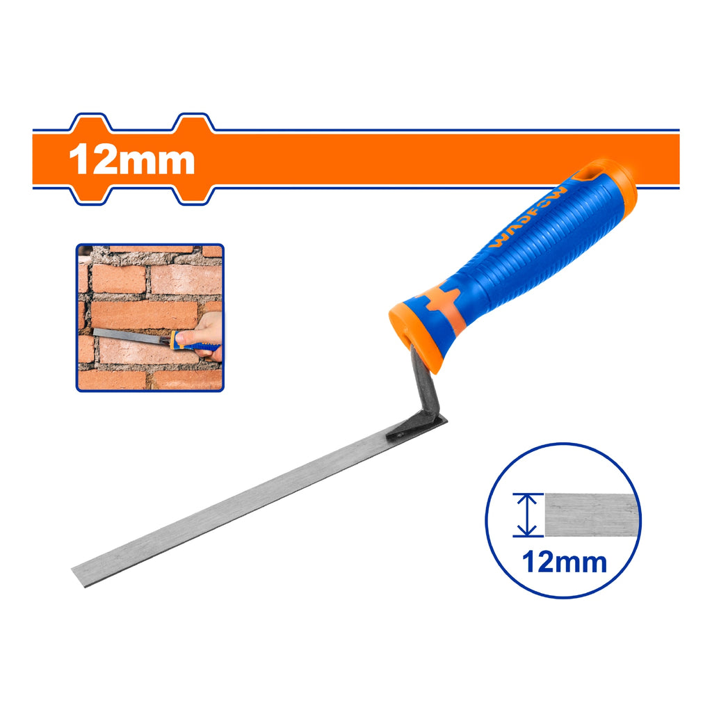 | Características | Paleta para rellenar juntas. Tamaño de la hoja: 12 mm. Espesor: 1.2 mm. Mango de plástico. |