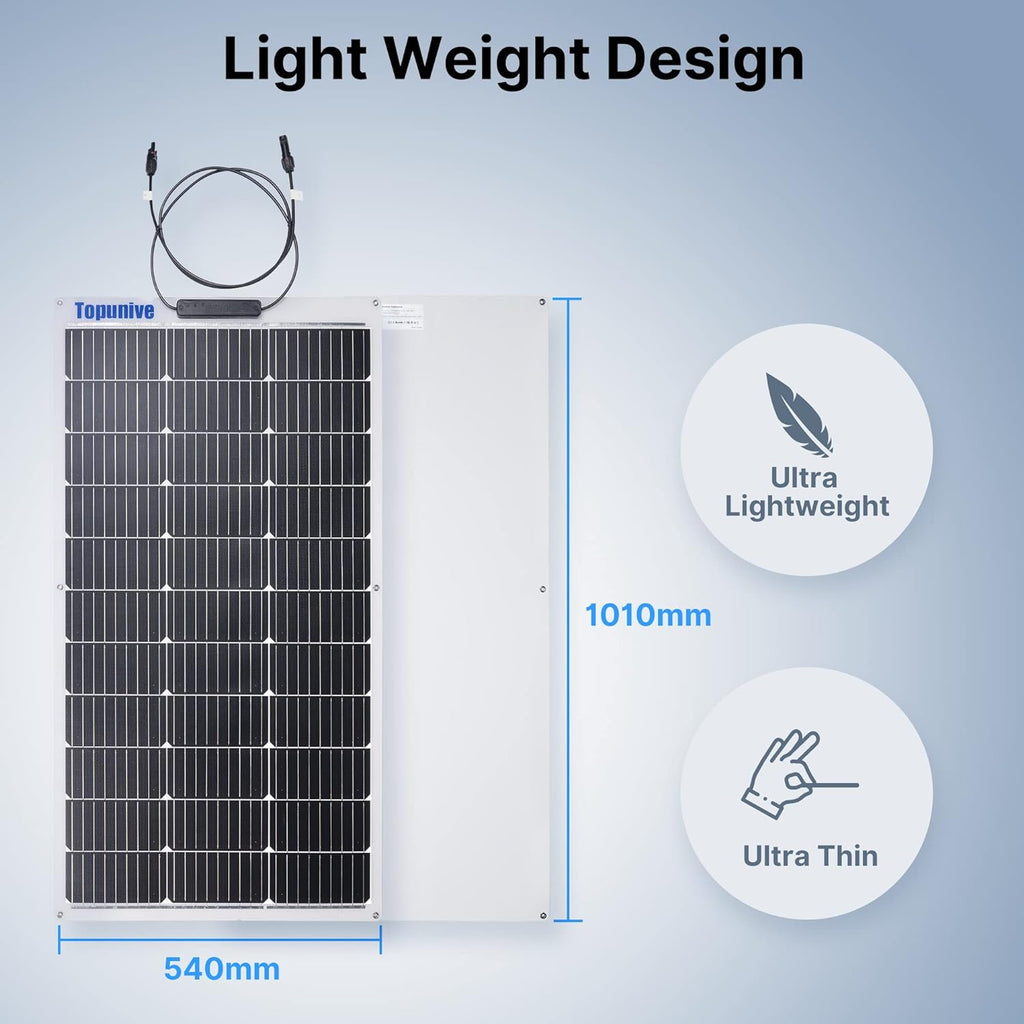 Panel solar de 100W, monocristalino flexible, ultradelgado, para RV, barcos, autos, camiones o remolques.