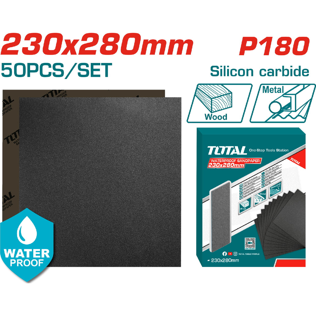 | *Nombre | Papel de Lija Grano P180. A prueba de agua. 230mmx280mm. Set 50 Hojas. |