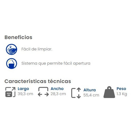 -Tapa alta con sistema vaivén y conserva la capacidad de almacenamiento.