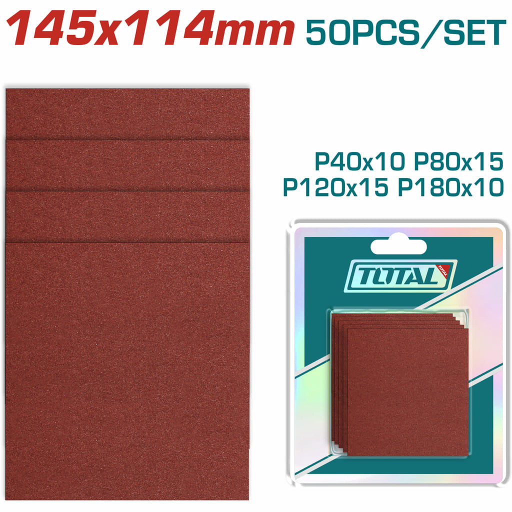 Papeles de Lija 145 x 114mm Granos surtidos. Set de 50 piezas.
