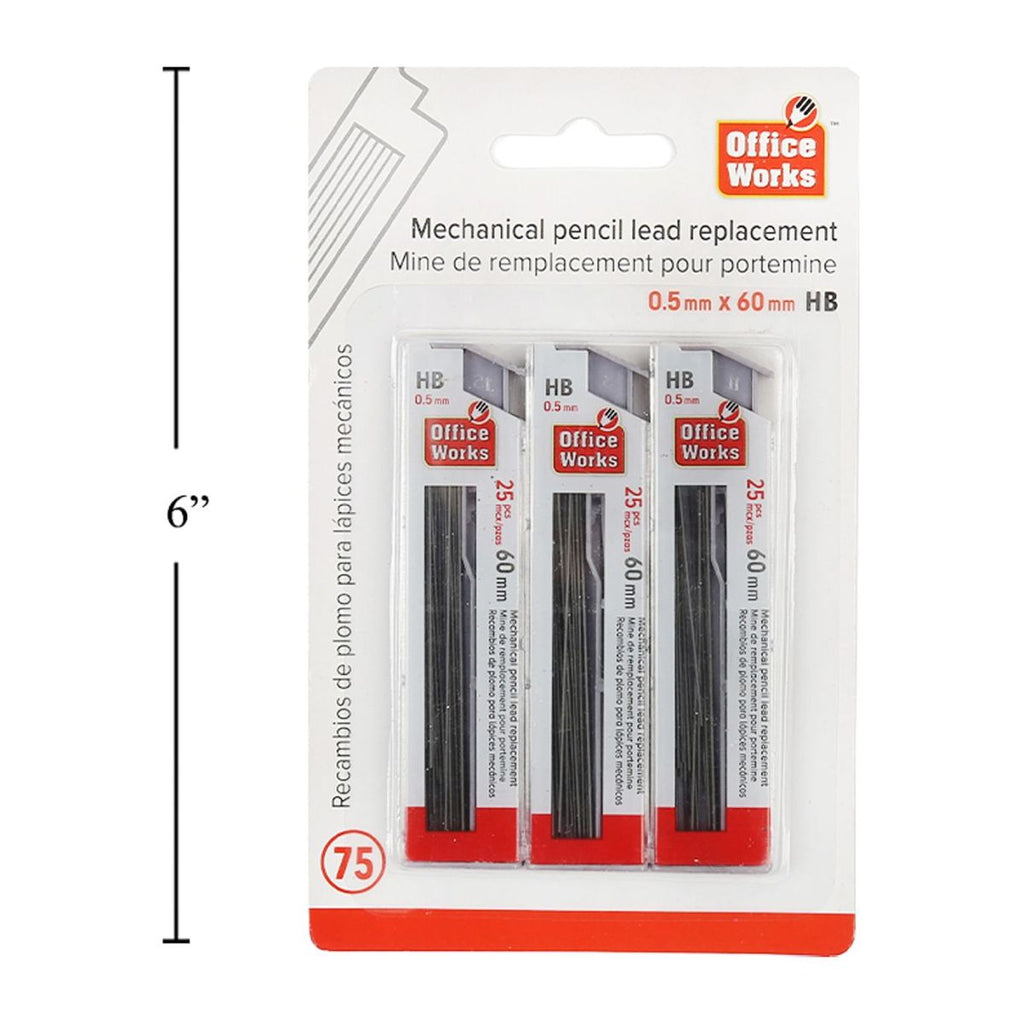 Paquete de 3 Minas 0,5x60 mm @ 75 piezas Mina de lápiz mecánico, b / c