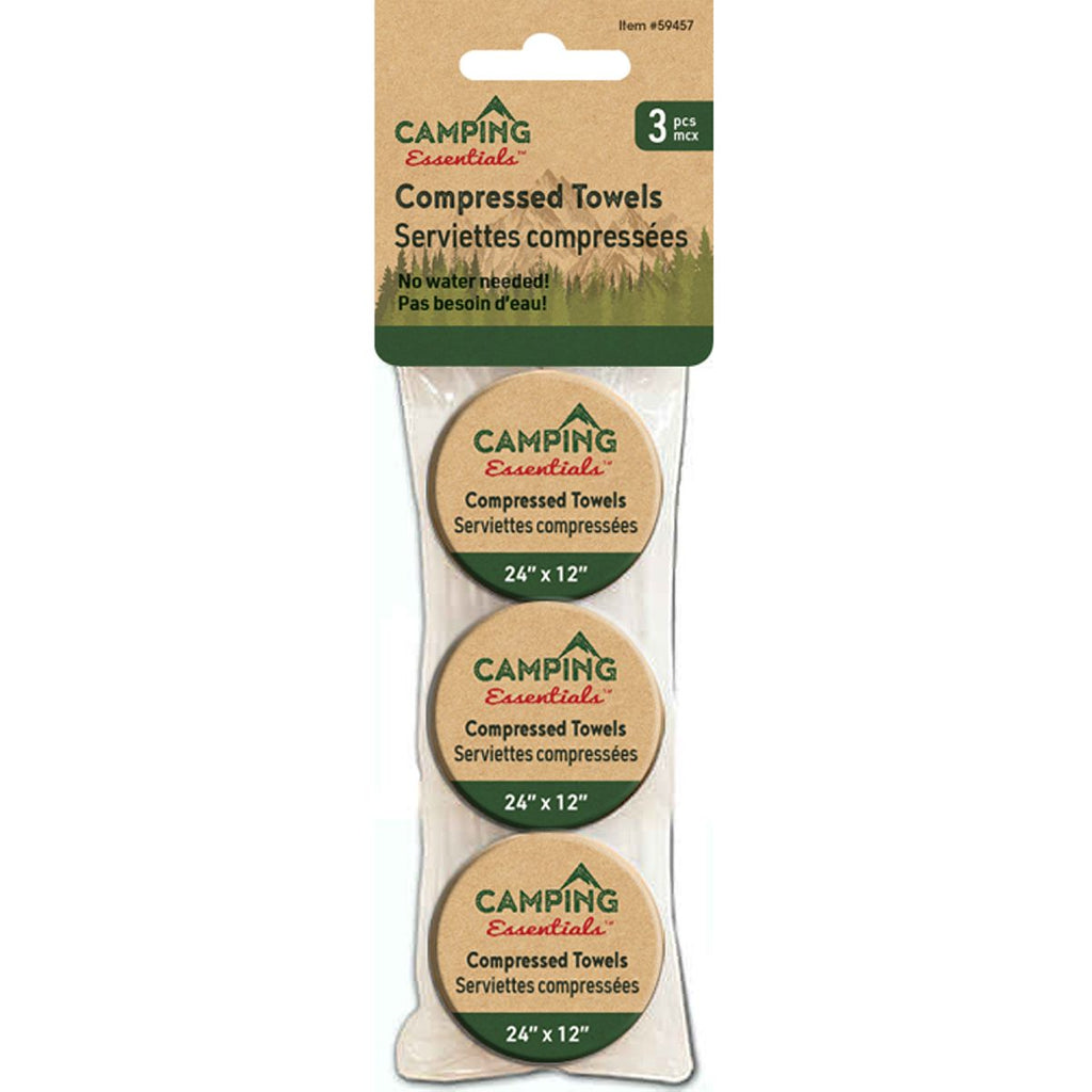 Paquete De 3 Toallas Comprimidas Para Acampar, 24 "X 12", No Se Necesita Agua